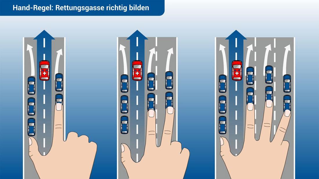 Правила поведения в этом случае ясны: Участники движения должны уступить дорогу машинам экстренных служб. Но многие водители зачастую не знают, как именно себя вести. Речь идет не только о безопасности спасателей, но и о том, чтобы парамедики и спасатели быстро добрались до пострадавших. Таким образом, они могут своевременно инициировать чрезвычайные меры и помочь пострадавшим  или даже спасти их жизни.